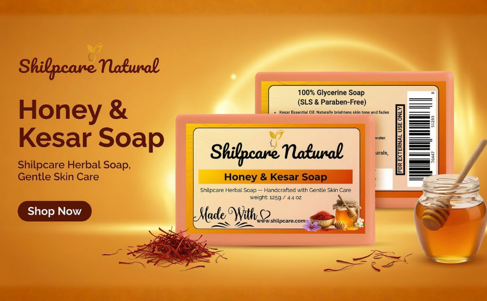 Shilpcare Honey & Kesar Soap brightens skin and reduces dark spots. SLS & paraben-free for soft, glowing skin.